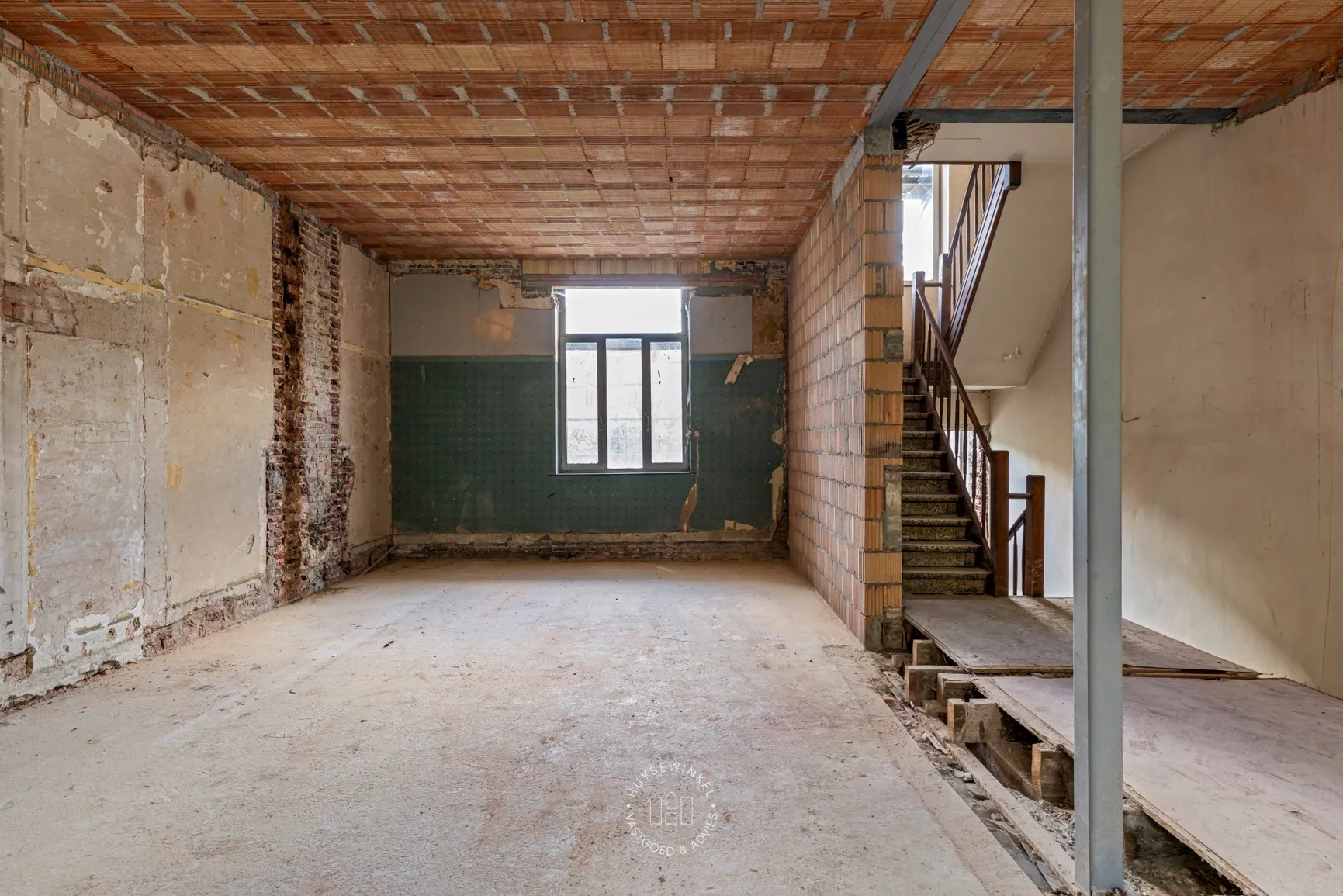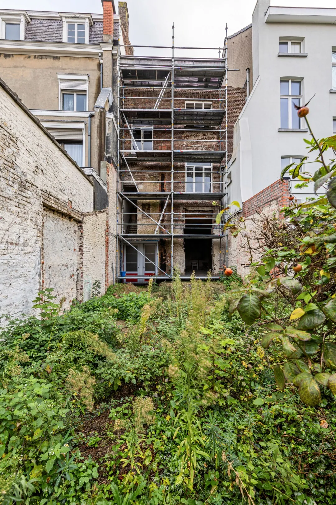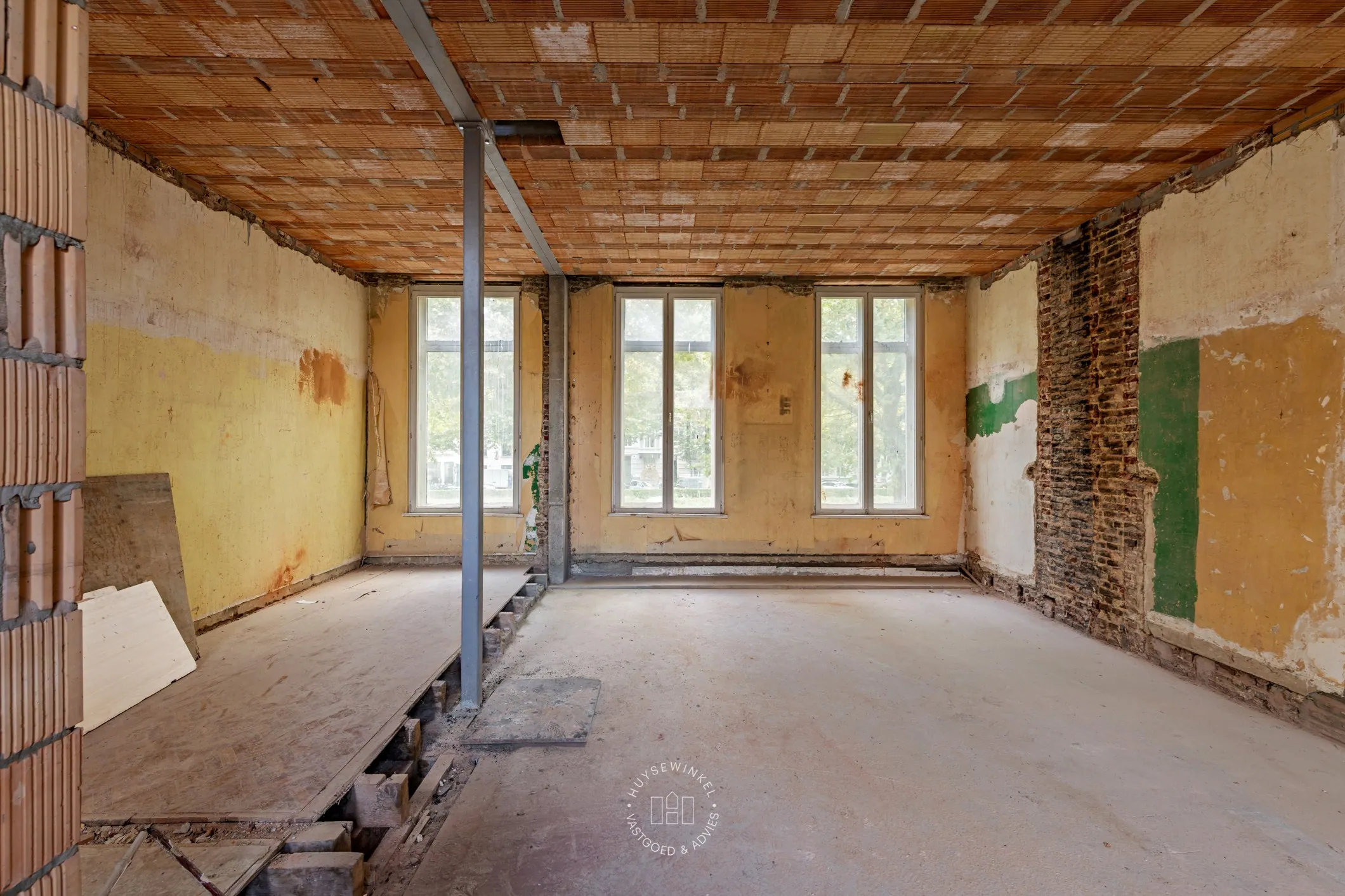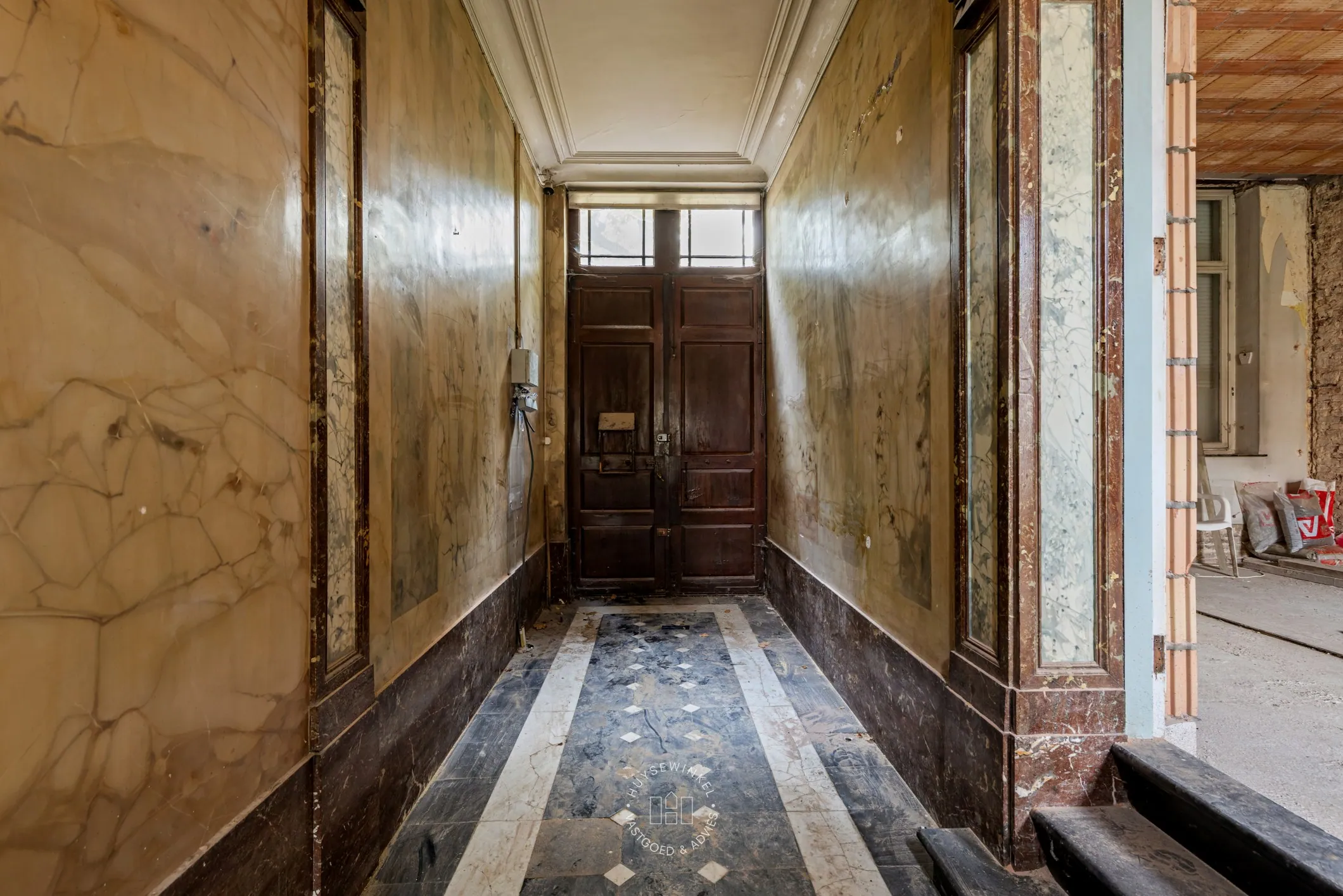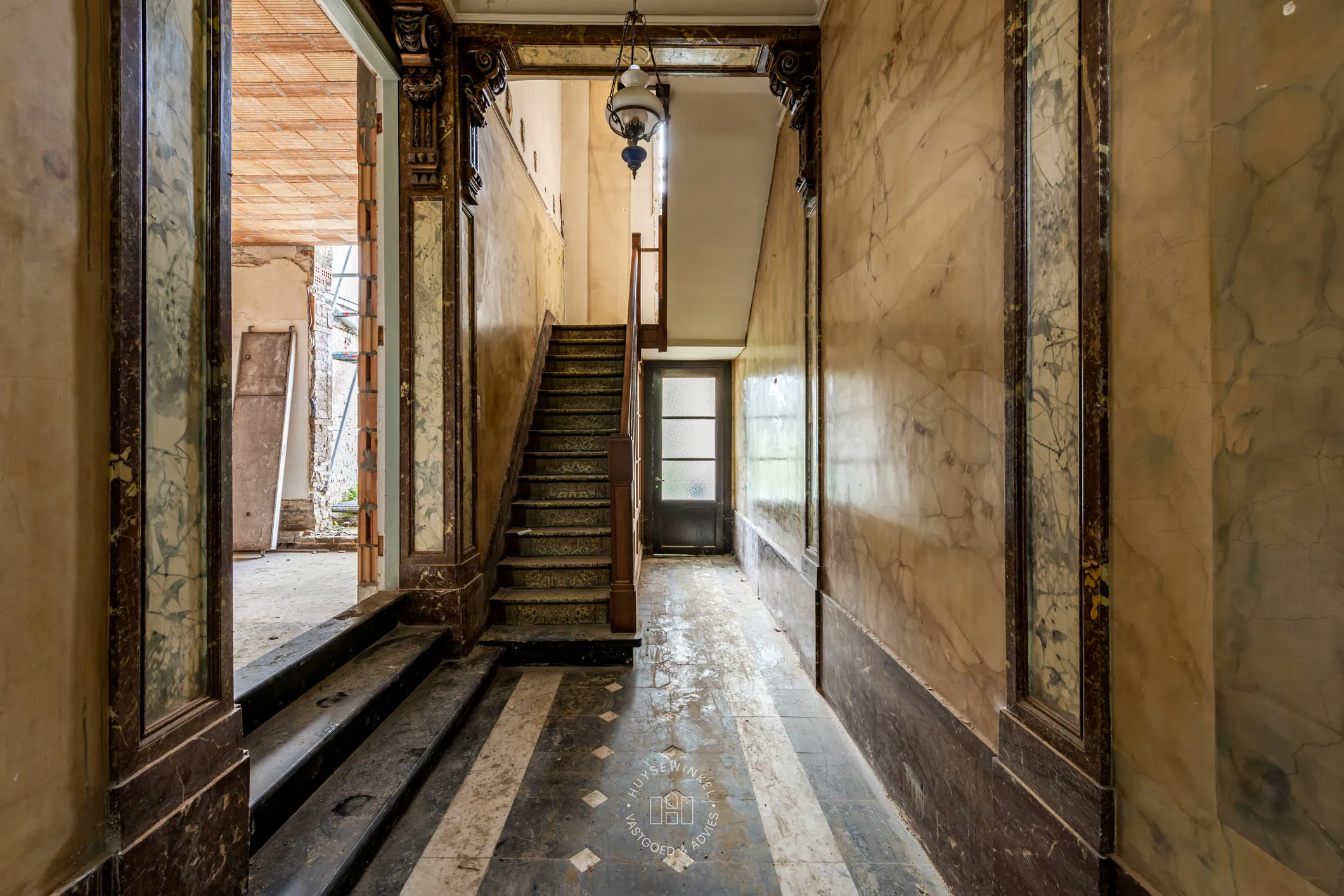 De woning werd volledig gestript tot de ruwbouw en vormt vandaag een solide basis voor verdere herontwikkeling. Alle grote structurele werken, waaronder het vernieuwen van de vloerplaten op de verdiepingen, zijn reeds uitgevoerd. Het gebouw staat daardoor klaar voor de afwerkingsfase, waarbij de toekomstige eigenaar de volledige indeling, afwerking en inrichting nog volledig naar eigen inzicht kan bepalen. De hoge plafonds, marmeren inkomhal en authentieke moulures herinneren aan de oorspronkelijke grandeur van de herenwoning.
