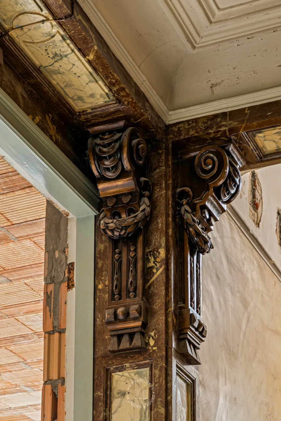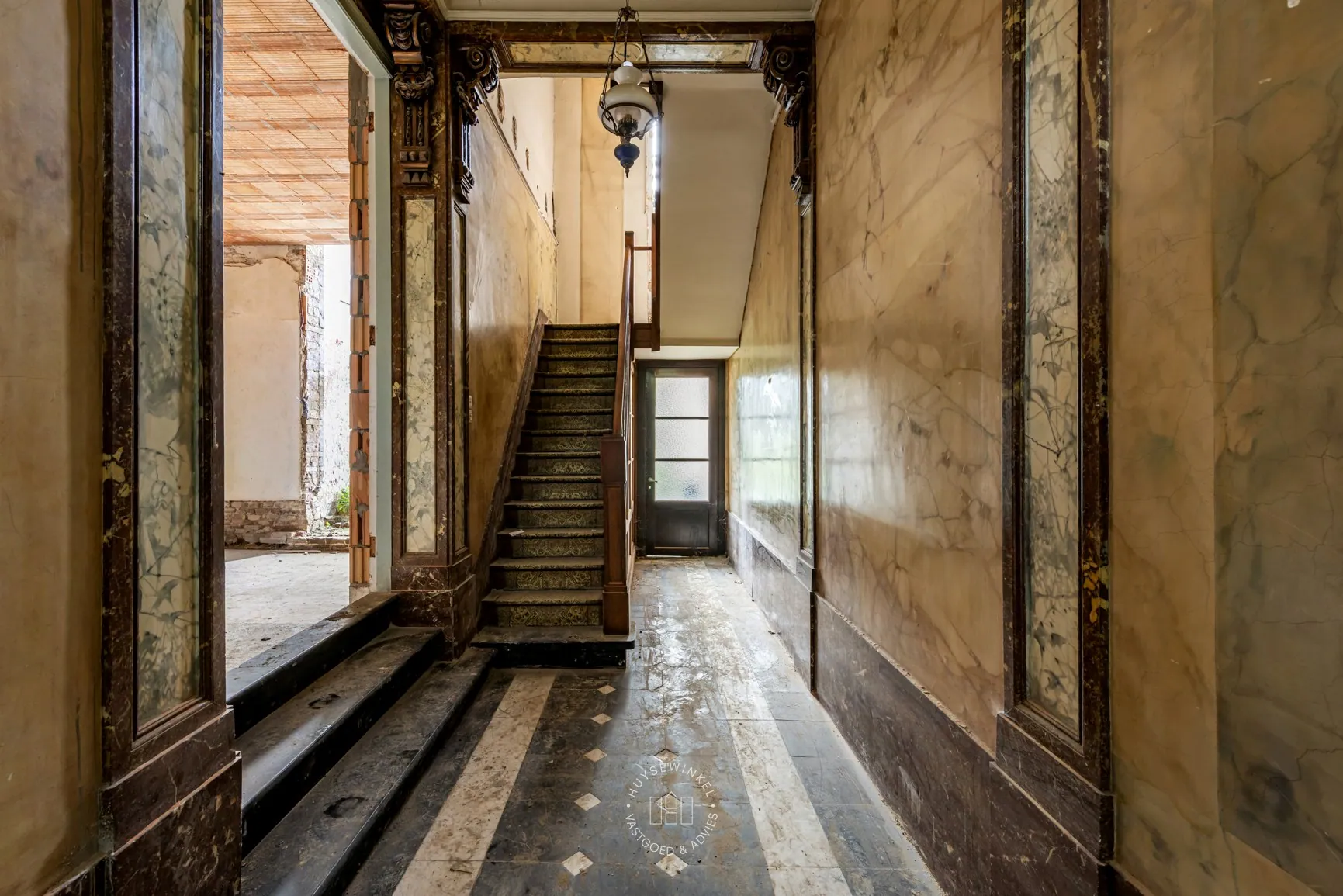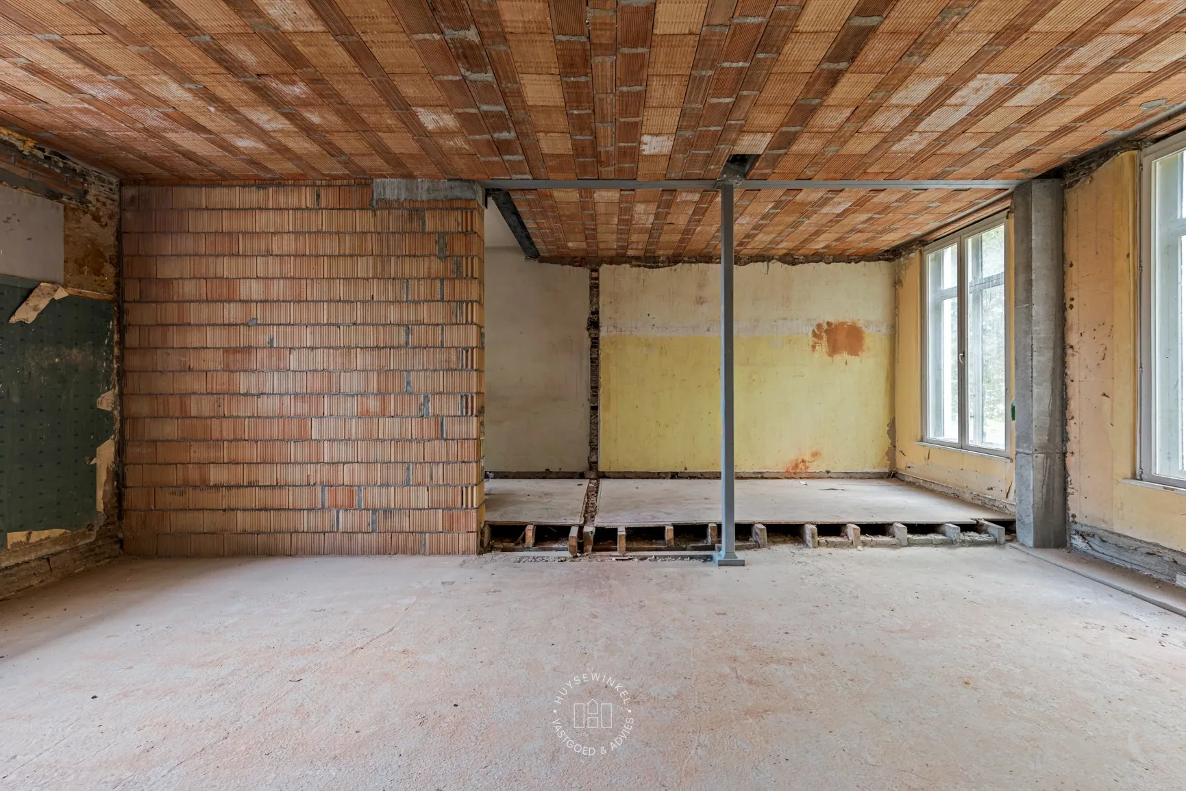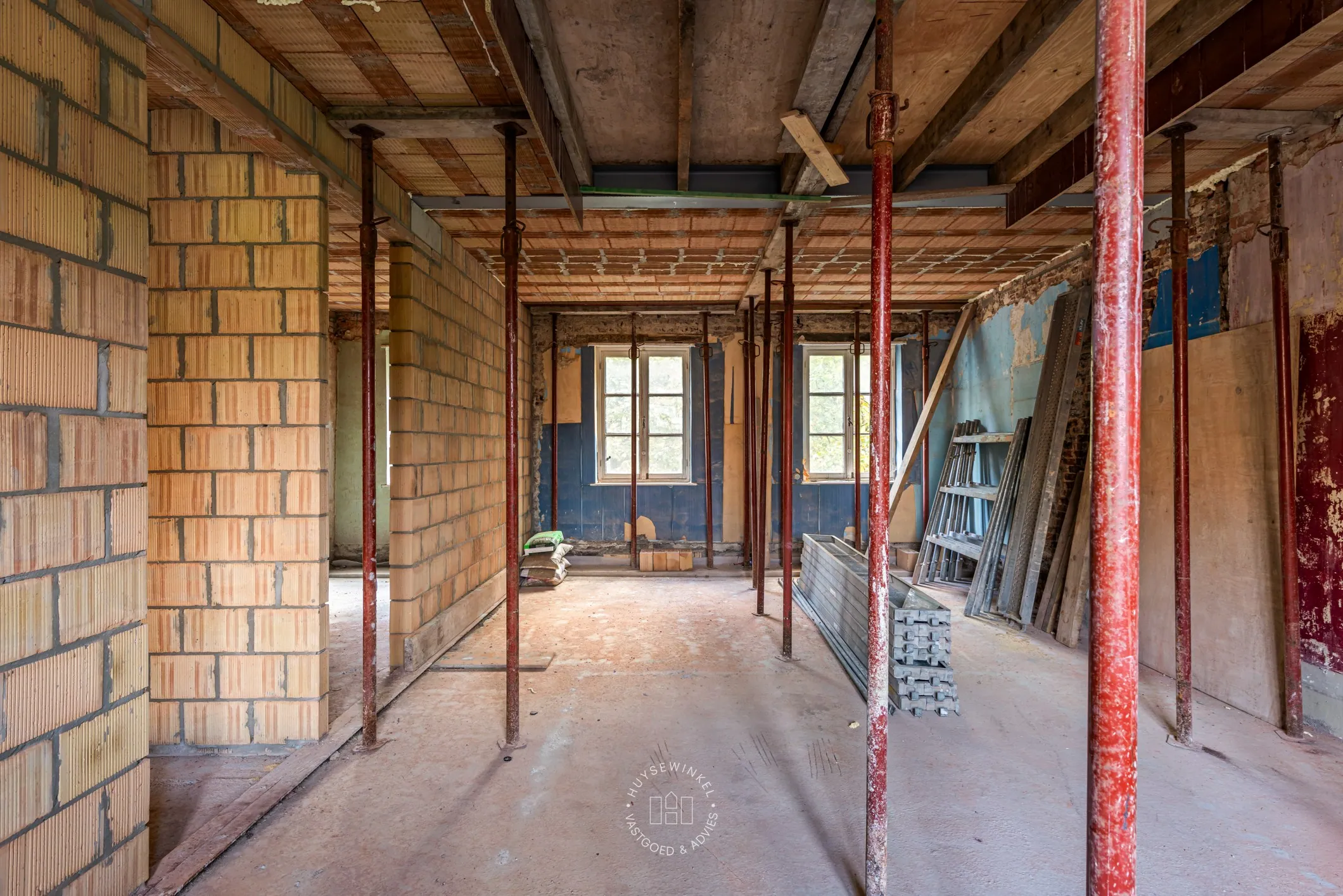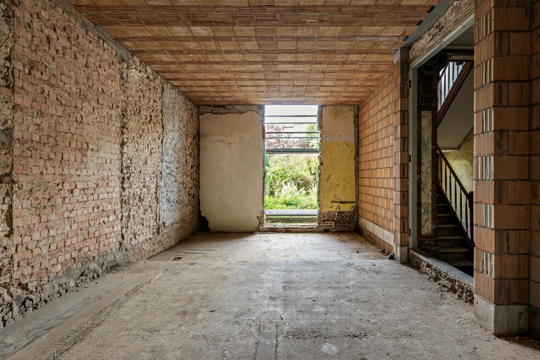 De woning werd volledig gestript tot de ruwbouw en vormt vandaag een solide basis voor verdere herontwikkeling. Alle grote structurele werken, waaronder het vernieuwen van de vloerplaten op de verdiepingen, zijn reeds uitgevoerd. Het gebouw staat daardoor klaar voor de afwerkingsfase, waarbij de toekomstige eigenaar de volledige indeling, afwerking en inrichting nog volledig naar eigen inzicht kan bepalen. De hoge plafonds, marmeren inkomhal en authentieke moulures herinneren aan de oorspronkelijke grandeur van de herenwoning.